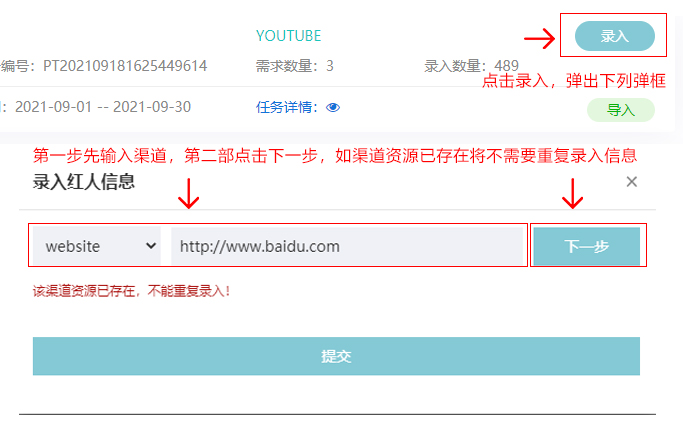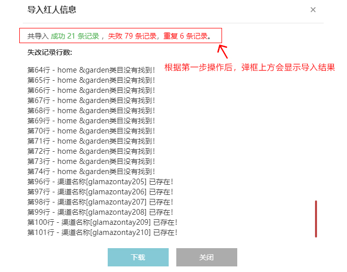 第三步:资源信息批量导入,导入成功的资源信息会进入待审核资源列表,若有重复,会有提醒多少条重复,导入失败的会提示失败原因,修改后可再次导入。